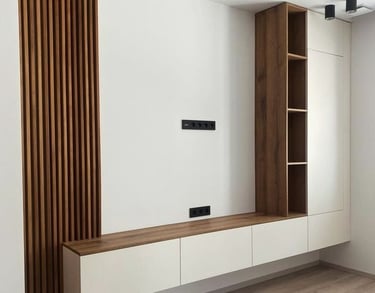 No todos los proyectos requieren una cocina completa o un clóset gigante. En crea+ también diseñamos y fabricamos muebles personalizados decorativos, ideales para esos espacios que merecen un toque único: mesas auxiliares, repisas, muebles flotantes, escritorios compactos, recibidores o muebles de TV adaptados al tamaño y estilo de tu hogar.