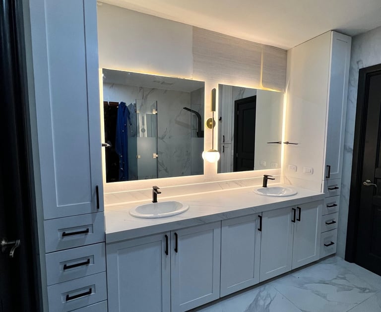 Transformamos tu baño en un lugar de descanso y confort con mobiliario moderno, resistente a la humedad y diseñado para tu rutina diaria. Gabinetes, lavamanos y muebles bajos que se ajustan a tu espacio y gustos. Convertí tu baño en un rincón funcional y lleno de estilo.